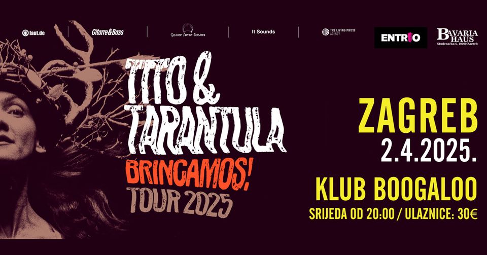Nakon uspješno odrađenog prvog dijela Brincamos europske turneje 2024., Tito & Tarantula se u proljeće 2025. vraćaju u Europu, kada će između trideset i tri grada posjetiti i dva hrvatska – Zagreb i Rijeku!